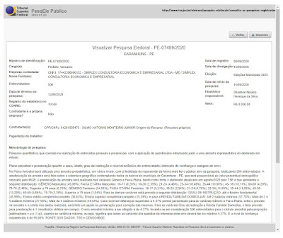 também divulgou pesquisa registrada aqui em Garanhuns no último dia 16 de