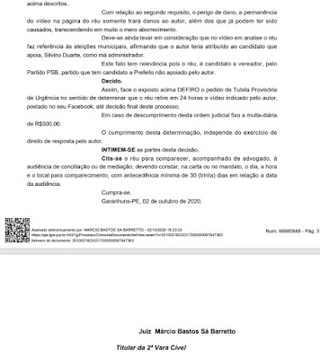 é titular da 2ª Vara Cível da Comarca de Garanhuns, “o perigo de dano, a permanência do vídeo na