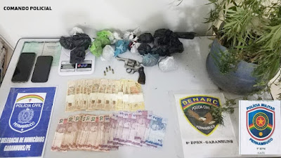 Também foram apreendidas cerca quantidade de maconha, além de um revólver