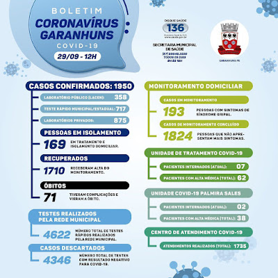 1.950 casos de COVID-19 aqui em Garanhuns. Deste total 71 pessoas vieram a
