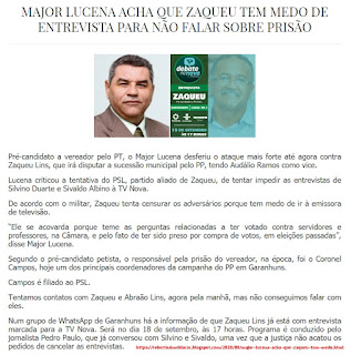 eleições passadas”, disse o Major Lucena, ao Blog do Roberto Almeida, ao