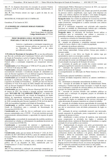 Garanhuns neste ano de 2021. A Portaria nº 001, publicada no Diário Oficial dos