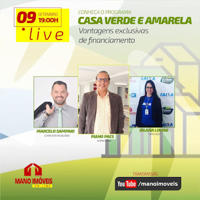 Verde e Amarela, a Mano Imóveis promove hoje, dia 9, a partir das 19h, uma Live