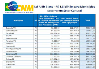 recebimento dos recursos previstos na Lei Aldir Blanc foi enviado ao