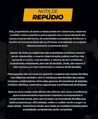 Bares e Restaurantes em Garanhuns se reuniram e divulgaram nesse domingo, dia