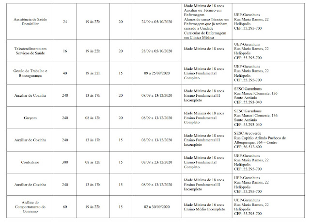 As formações são nas áreas deArtes, Beleza, Gastronomia, Gestão, Idiomas, Tecnologia e Vendas e poderão ter
