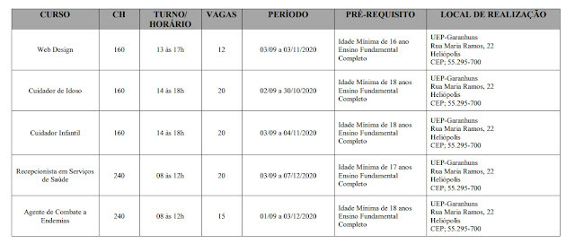 edital com a lista completa de cursos disponíveis, número de vagas e locais de