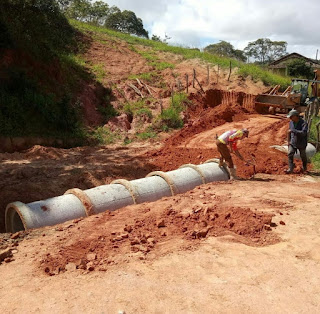 molhadas, colocamos tubulações de concreto e realizamos a terraplanagem com colocação