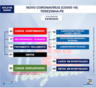 divulgado pela Secretaria de Saúde trouxe a informação de 33 novas confirmações.