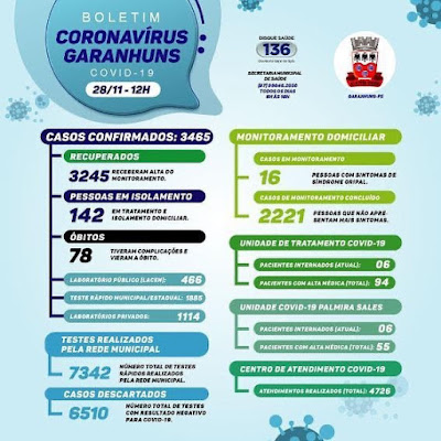 dia 27, Garanhuns já havia confirmado 3.460 casos de COVID-19. Deste total, 78