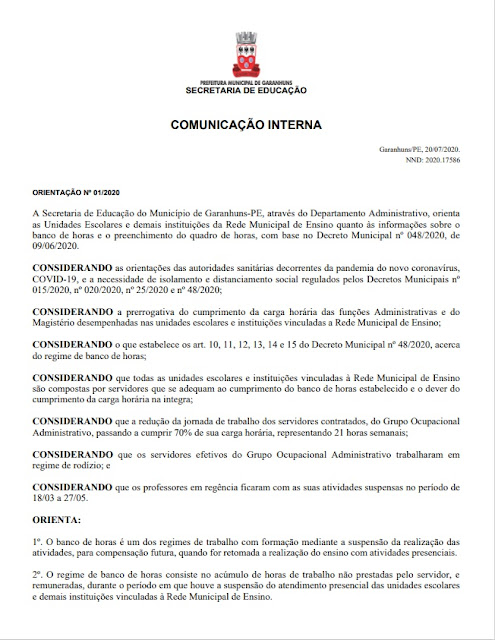 Interno, expedido pela Educação Municipal que versa sobre esse assunto.