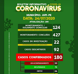Jupi e São Bento do Una. Ele deixa filhos e esposa. Até ontem, dia 24, o município de Jupi já havia registrado 180 casos positivos da COVID-19 e 6 mortes.