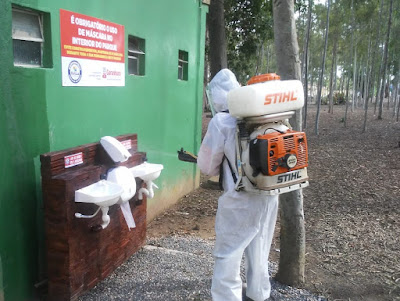 pulverizações com sanitizantes a base de quaternário de amônia, que combate microrganismos patogênicos,