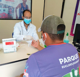 Saúde, realizou a testagem da COVID-19 em todos os funcionários que trabalham no