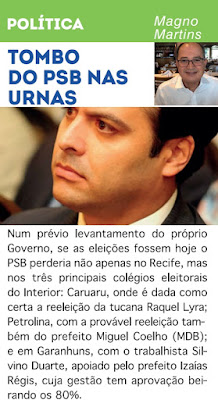 Recife. De acordo com a publicação, o PSB levará um “Tombo nas Urnas”.