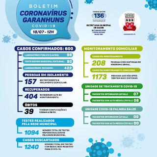 600 casos de COVID-19 em Garanhuns. Deste total 39 pessoas vieram a óbito