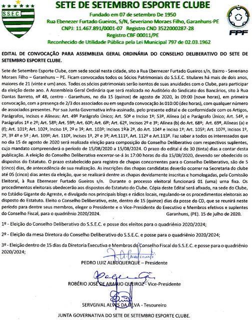 Clique AQUI e confira o Edital de Convocação das Eleições do Sete de Setembro.