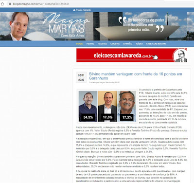 Garanhuns pelo PTB, Silvino Duarte, subiu de 33% para 34,5% na nova