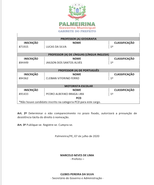 A Portaria GP nº 048/2020,convoca candidatos aprovados para diversas funções. De acordo com o documento,