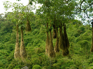vento. Às vezes, encontram-se árvores com 50 a 60 ninhos de Japu. Eles são