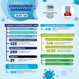 Ao todo, já foram confirmados 467 casos de COVID-19 em Garanhuns. Deste total 31 pessoas