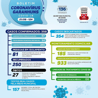 Garanhuns passou a somar 358 casos confirmados de COVID-19. Deste total,