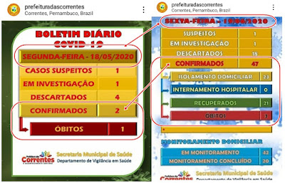 COVID-19, para 143 casos confirmados e 4 óbitos pela doença. Correntes