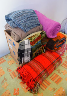 cobertores, roupas, agasalhos e outros donativos, que serão doados a quem mais