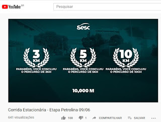corrida virtual será transmitida pelo canal do Sesc Pernambuco no Youtube (www.youtube.com/sescpernambuco