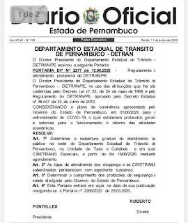 gradual do atendimento ao público na sede do Departamento Estadual de Trânsito de Pernambuco (DETRAN), na