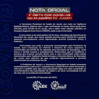COVID-19, o Município de Jucati já registrou 13 casos positivos da Doença,