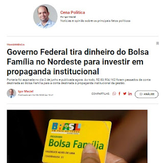 vai irrigar as propagandas do Governo sairá, então, do prato de feijão de