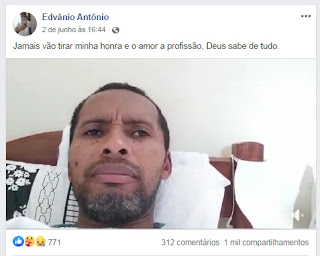 Agora, Edvânio está isolado em sua residência com suspeita da Covid-19 e não
