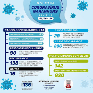 hoje também registra a confirmação de cinco casos para COVID-19 no Município.