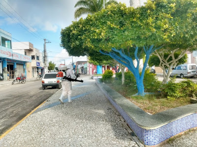 desinfecção ruas, praças, órgãos públicos, comércio, banco, lotérica no hospital e nos postos de saúde,