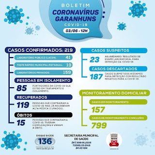 15 pessoas vieram a óbito (8,84%) e 119 (54,33%) estão recuperadas após cumprir