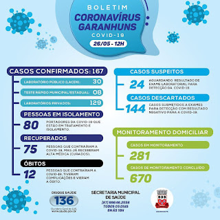 terça-feira, dia 26, de 20 novos casos de COVID-19 aqui em Garanhuns. As