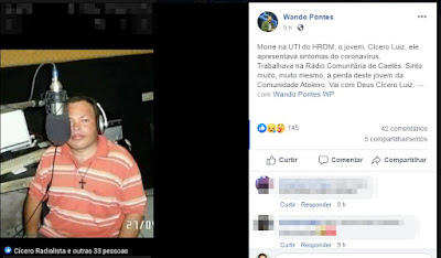 Blog Caetés News trouxe a informação de que o radialista Cícero Luiz, de 37 anos, que trabalhava na Rádio Comunitária