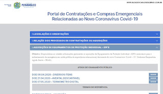 contratações e compras emergenciais efetuadas pelo Governo Estadual, com dados