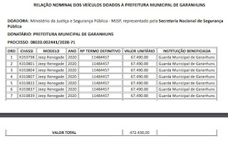 destinados a Cidade por meio de doação do Ministério da Justiça e Segurança