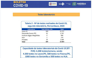 Lacen-PE, e também de testes rápidos, feitos por laboratórios da rede