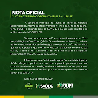 em Jupi e em Bom Conselho, aqui no Agreste Meridional. Em Jupi, o segundo paciente