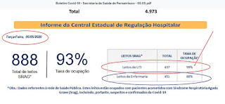 no início da noite de hoje, dia 5, 99% dos Leitos de UTI estão ocupados e