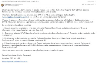 Regional de Saúde, sediada aqui em Garanhuns, o Blog do Carlos Eugênio manteve