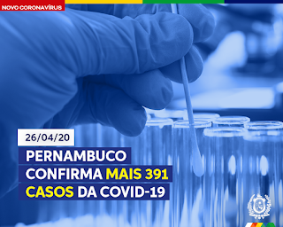 domingo, dia 26, Pernambuco confirmou 391 novos casos da COVID-19. Destes, 169