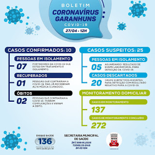 o Município segue com dez casos confirmados, sendo registrados nos bairros Boa