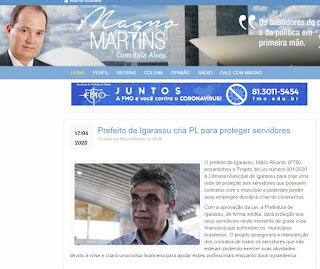 Ricardo Alves (PSB) reduzindo o salário do próprio Prefeito; do Vice-prefeito; dos
