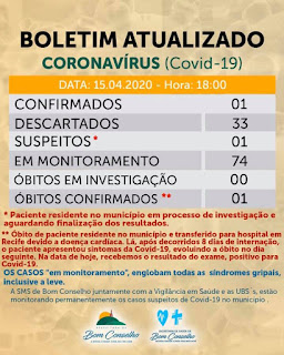 casos positivos do COVID-19 em Bom Conselho (2); São Bento do Una (2), Caetés e Capoeiras (1).