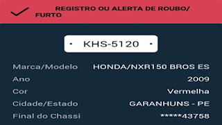 quinta-feira, dia 9, uma motocicleta Bros 150, de cor vermelha, placa KHS 5120,