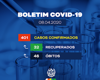 novos casos da COVID-19, elevando para 401 o número de confirmações no Estado. Dos